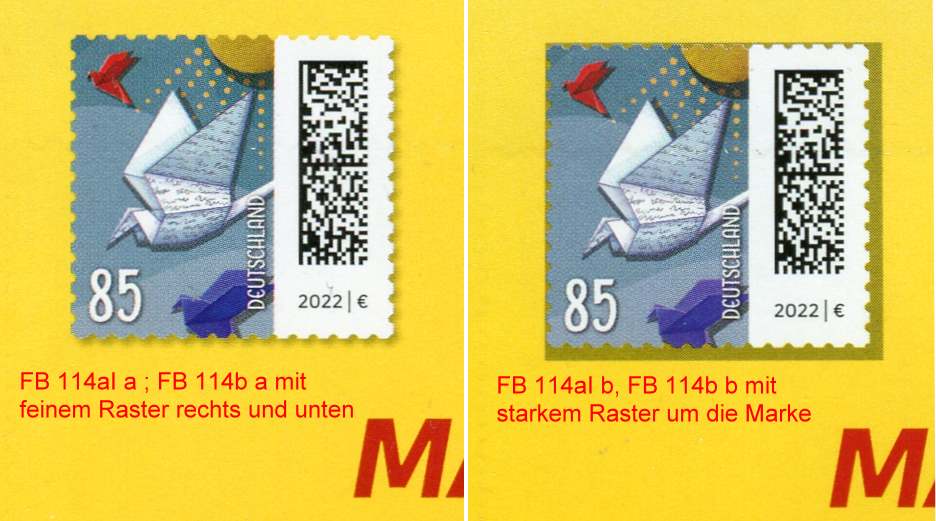 FB 114aI a ** mit DMC Code + Markierungsstriche oben, Druck Bagel