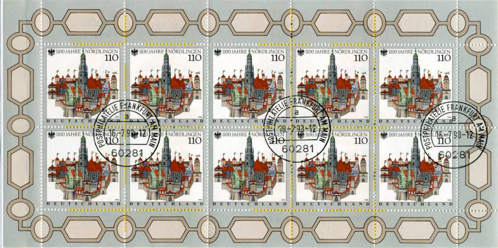 Werbungsvariante: MH 037 Ersttagsstempel Frankfurt, oben nicht dgz + 12ZL Ansatz