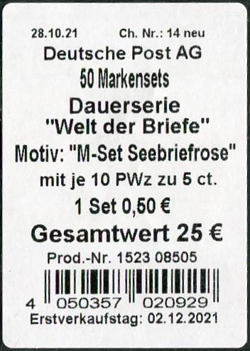 Werbungsvariante: FB113 I mit DMC Code,Varianten: Verpackungslabel Typ 1, Produkt Nr. 1523 08505 Katalogbezeichnung nach: Michel, Druck: Bundesdruckerei Berlin (BDB)